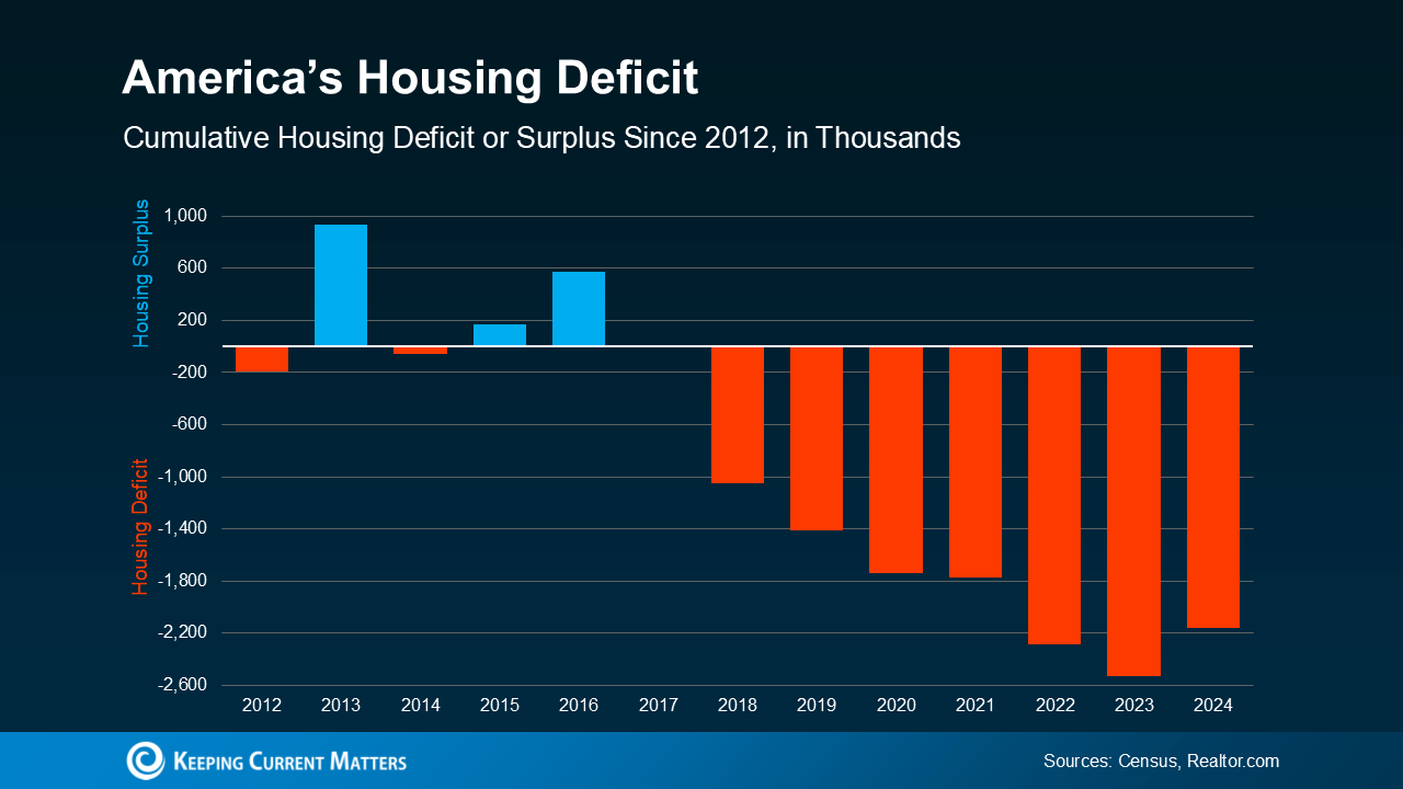 Here’s the key reason why. We don’t have a surplus of homes; we have a deficit to climb out of. What we’re dealing with is a long-term housing shortage – and it’s a big one.