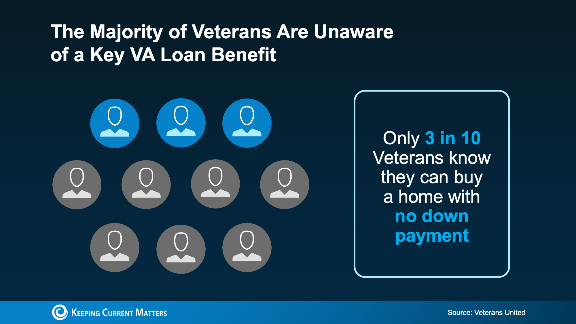 According to a report from Veterans United only 3 in 10 Veterans are aware they may be able to buy a home with no down payment with a VA loan (see visual below):