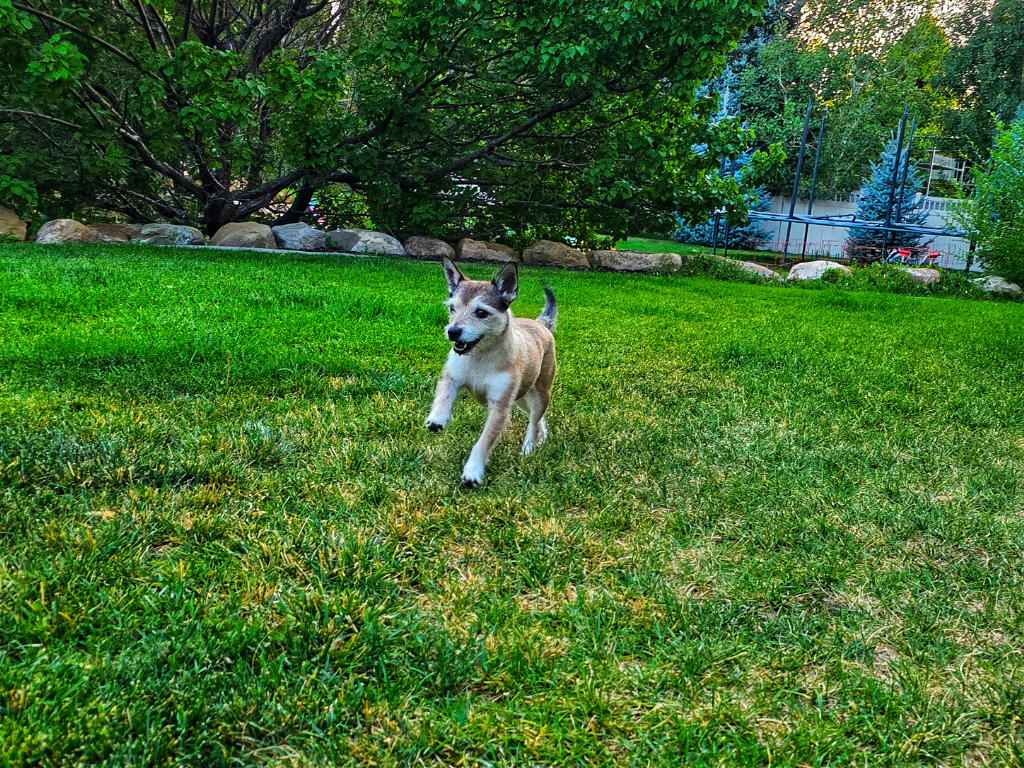 My son and I took Cameron, our miniature dire wolf (or, you know, just our dog), to a private dog park we booked through the Sniffspot app. It was peaceful, safe, and completely fenced-in, which meant Cameron could run free—and run he did.