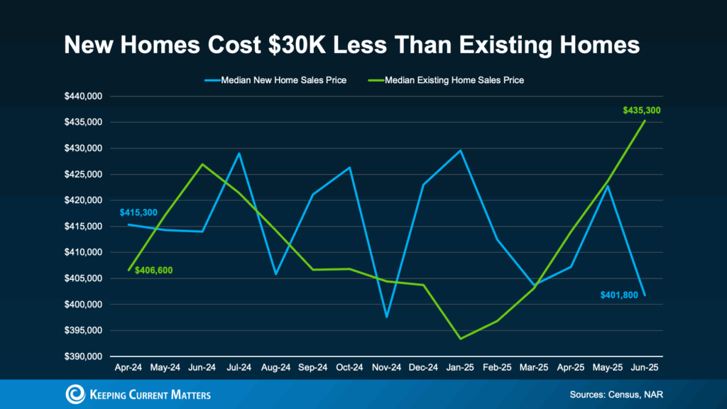 Data from Census and the National Association of Realtors (NAR) shows the median price of a newly built home today is actually lower than a home that’s been lived in already (an existing home):