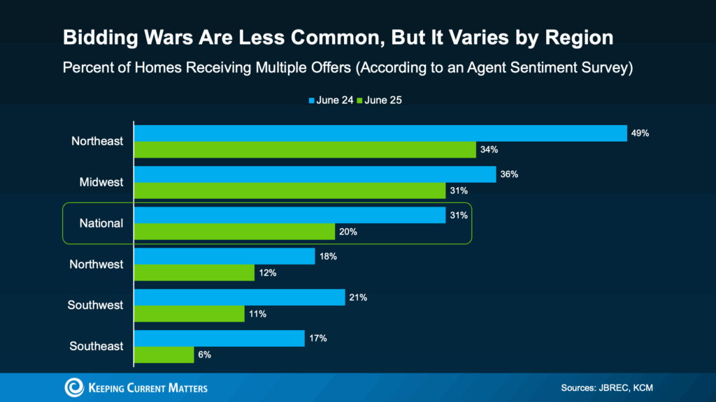 What’s behind the difference? In general, the areas still seeing bidding wars tend to have lower-than-normal inventory. That imbalance between buyers and available homes keeps pressure on prices and competition. But markets with more listings are seeing conditions cool – and that means fewer bidding wars.