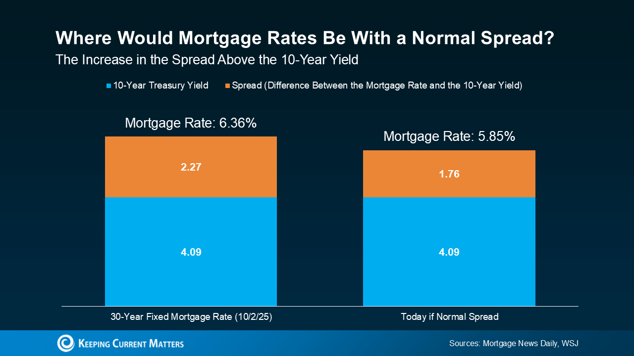 “A lower mortgage spread equals lower mortgage rates. If the spread continues to decline, mortgage rates could fall more than they already have.”